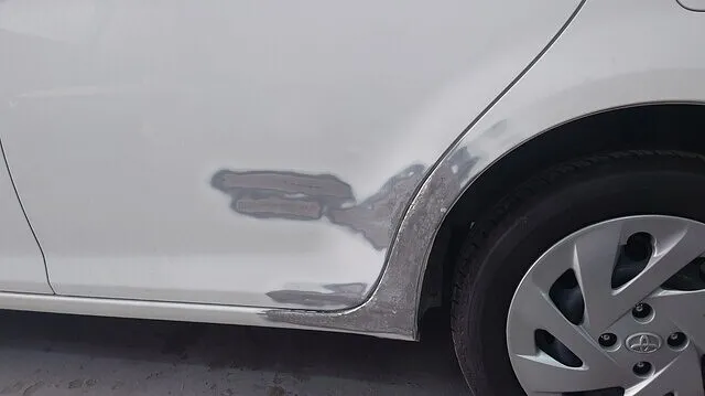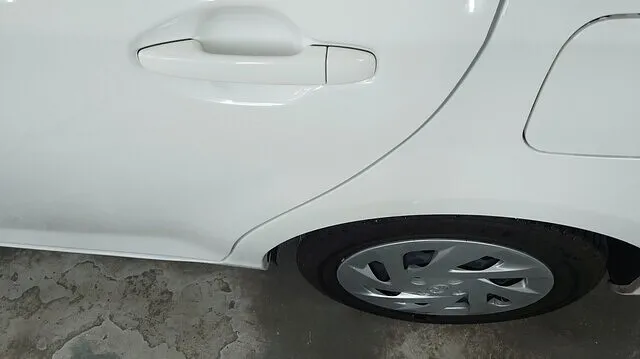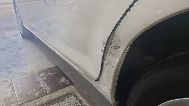 ドアを開けて内部を確認してみるとリヤフェンダーの内部のプレス部分まで凹んでしまっています。