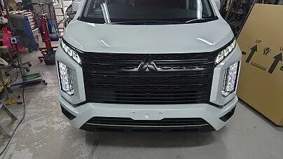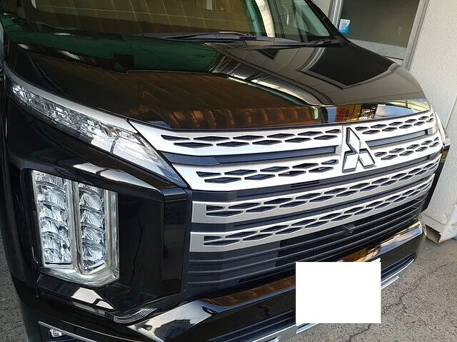 デリカD5のフロントリヤ周りのシルバー部分をマットブラックに塗装します。引き締まった感じになりより高級感が増します。マットブラック専用クリヤーを使用していますので通常のマットブラックより格段に対候性がよく劣化や色抜けが起きにくい材料を使用しています。