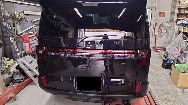 各部品を取り付けデリカD5のお車のブラックスモーク作業が完了いたしました。リヤ部はもともとのカバーより少し薄い目に仕上がっております。