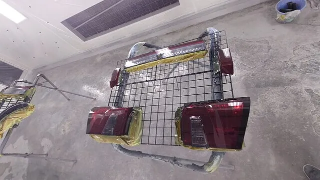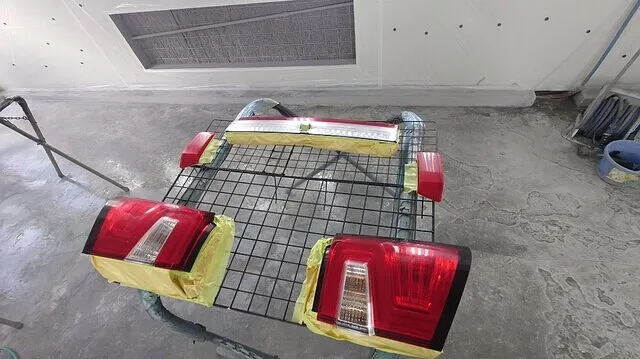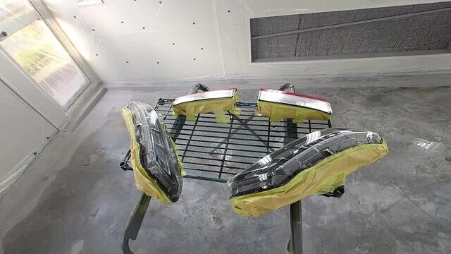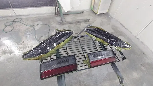 先ほど下地処理と脱脂処理したパーツをブラックスモーク塗装します。元々付いていたカバーが結構暗い感じだったのでもう少し薄めにしたいとのご要望がありましたので塗り重ねながら丁度よい濃さまで仕上げました。