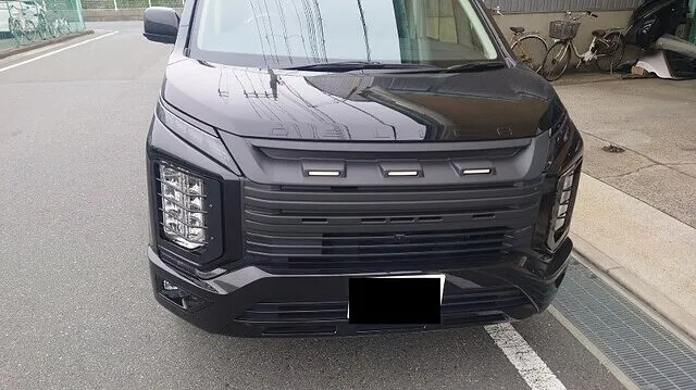 フロント部は社外グリルのマットブラックにマッチしていい感じに仕上がっています。結構暗い感じに思われますが透過性はしっかりしておりライトを点灯するとはっきりと見える状態です。